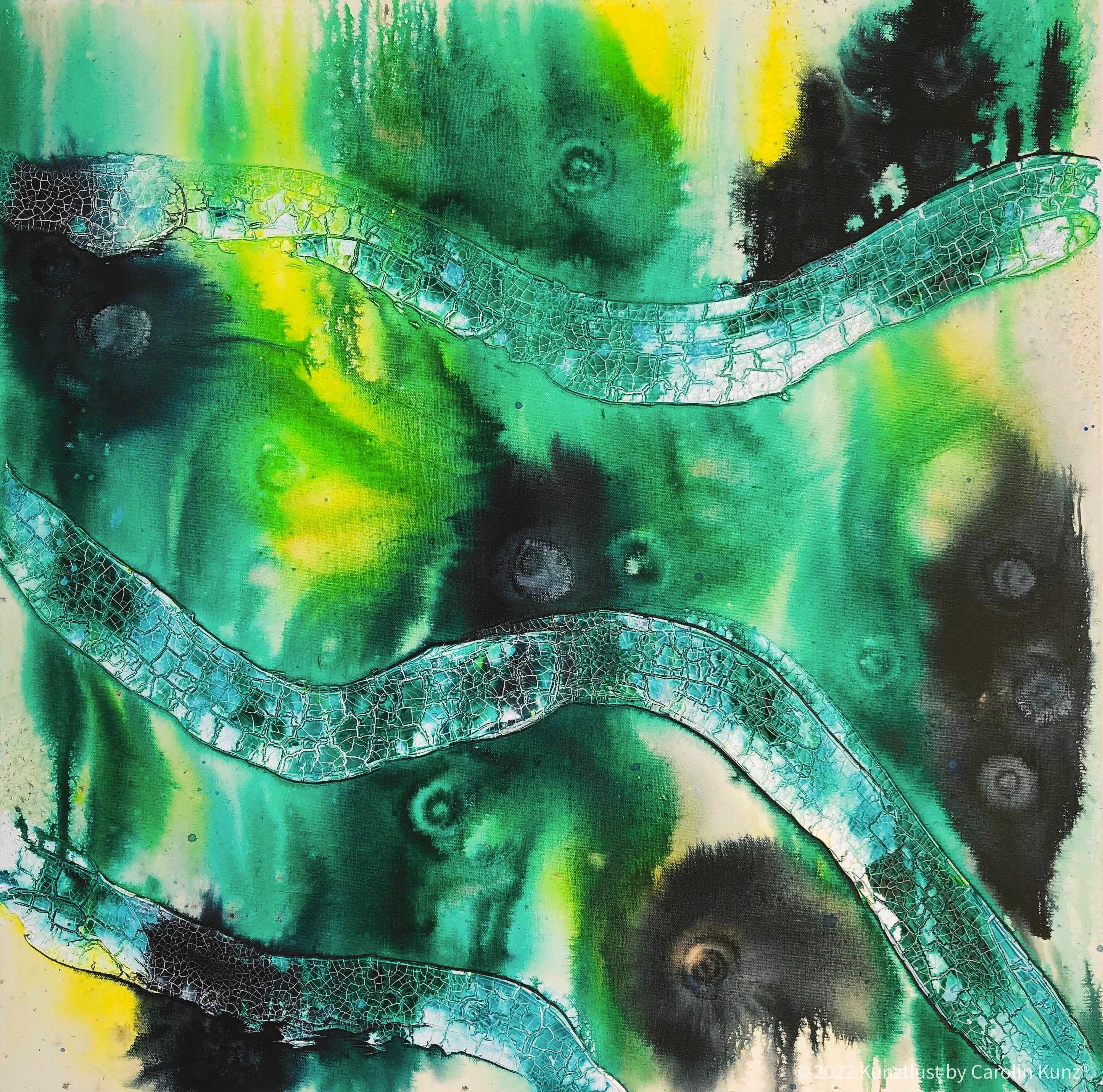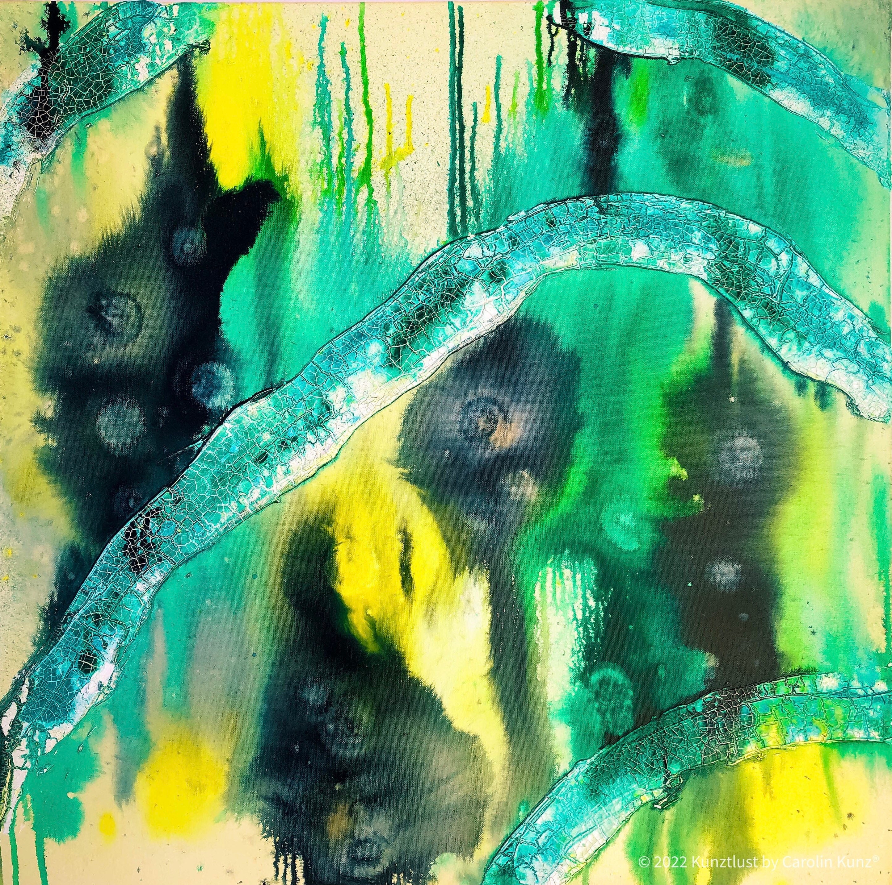Abstract art picture Pictures “The waves of life”, mixed ink technique, dimensions: 80 cm x 80 cm x 1.7 cm