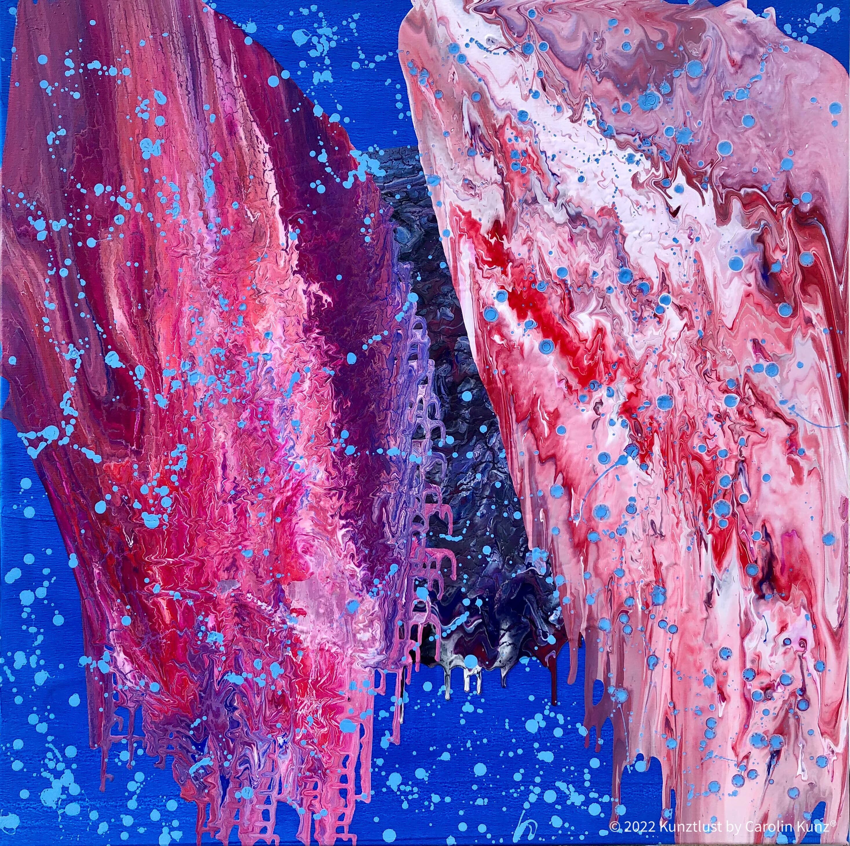 Abstract art painting, acrylic pouring on canvas, dimensions: 100 cm x 100 cm x 1.7 cm