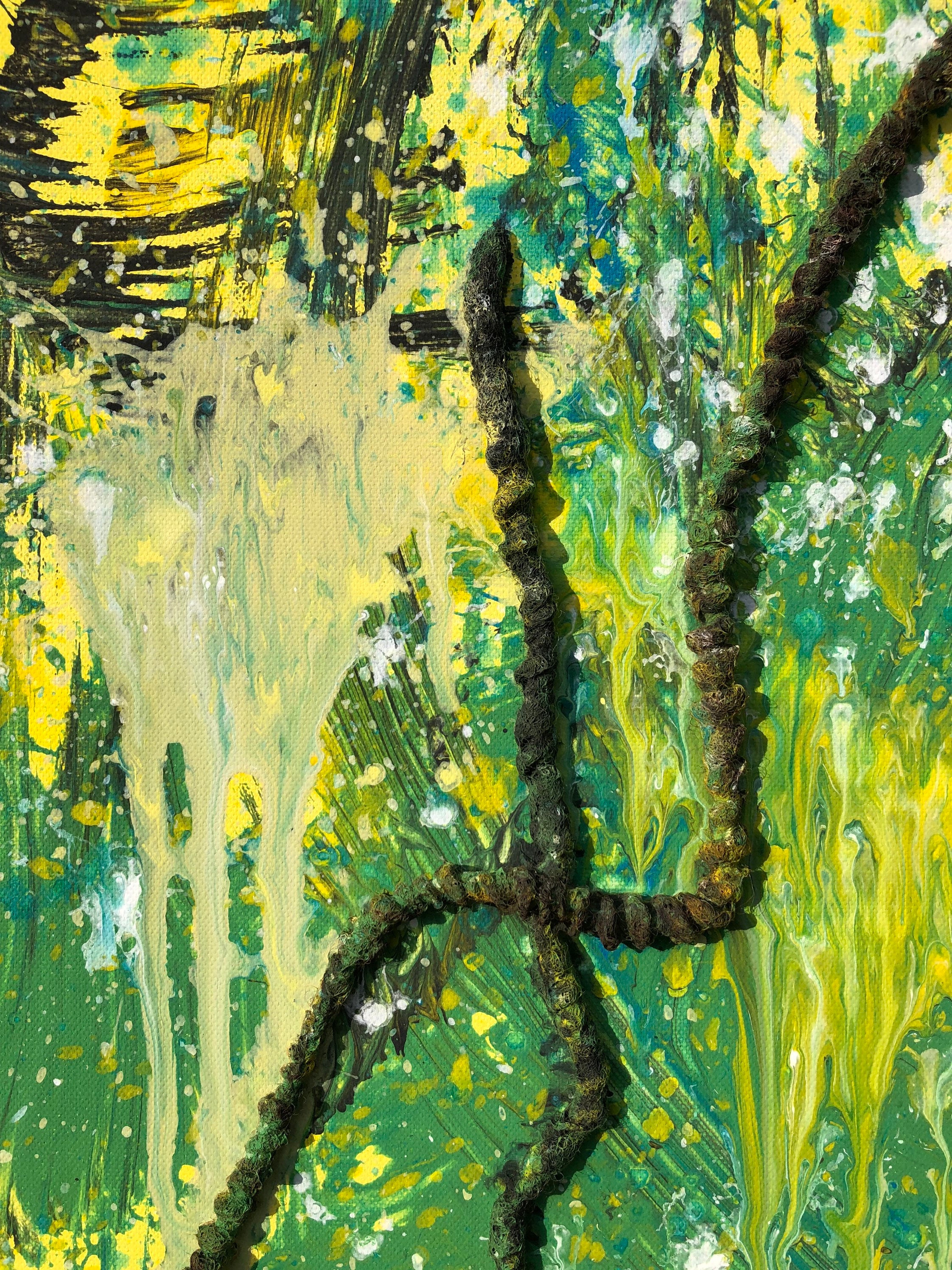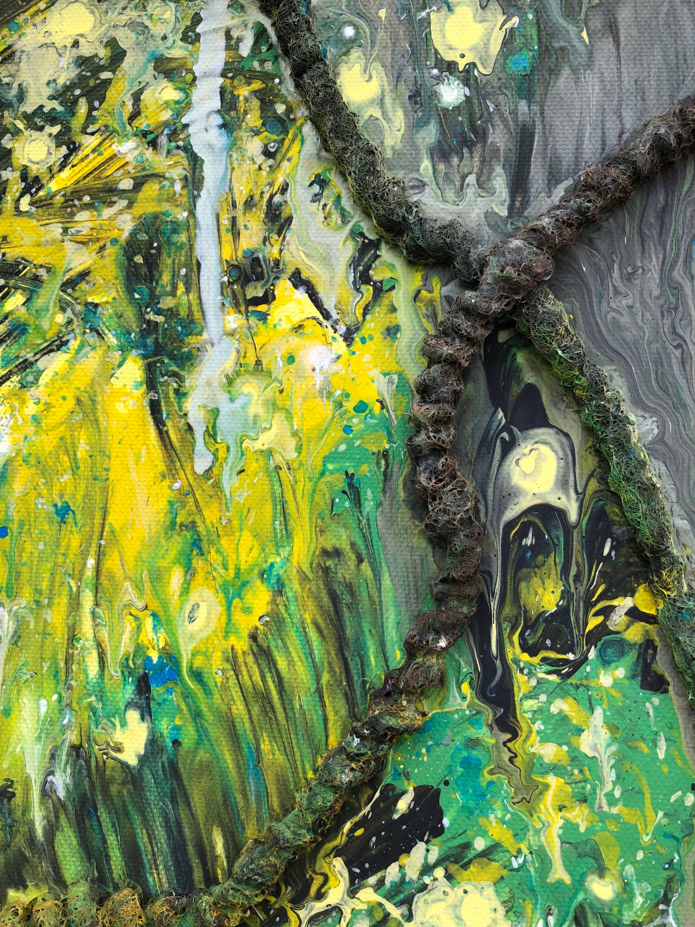 Abstract art painting "The Displacer" with acrylic mixed media and 3D effect on canvas, dimensions: 100 cm x 120 cm x 1.7 cm
