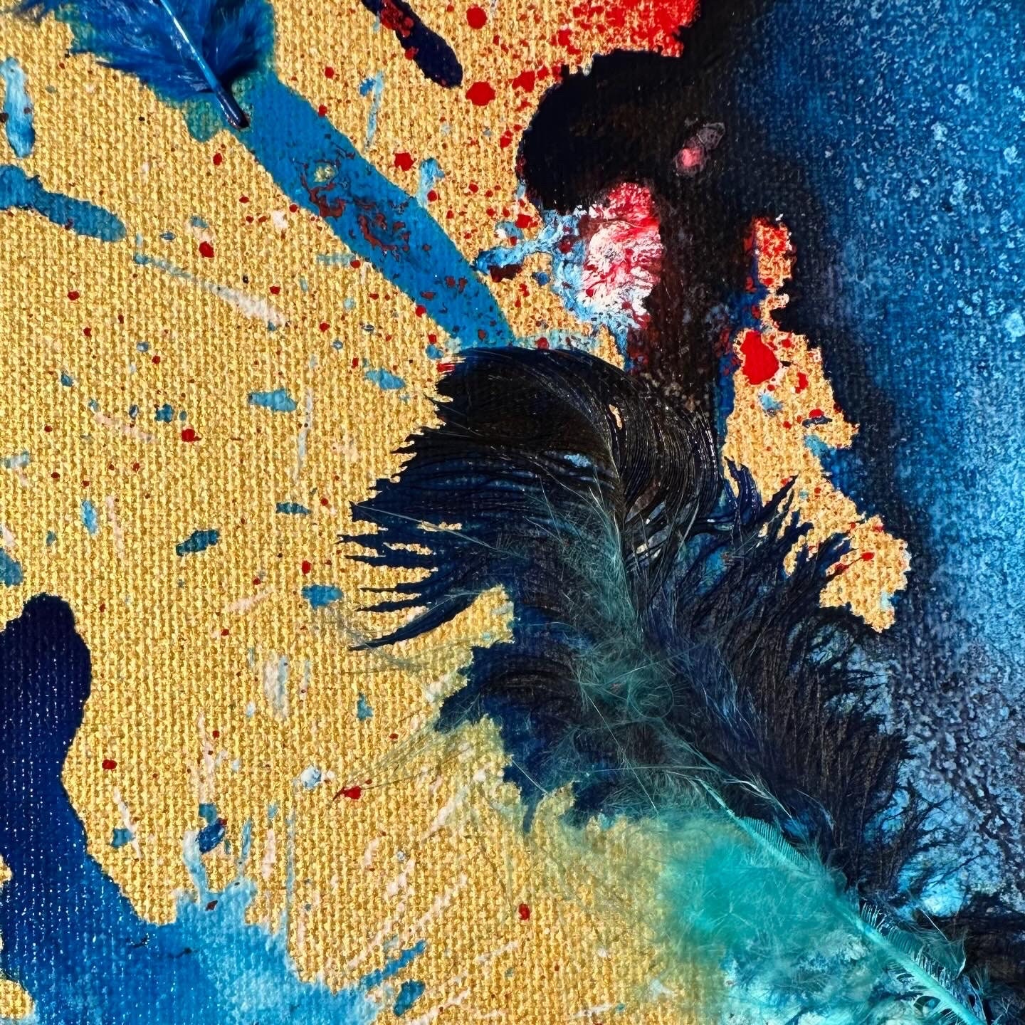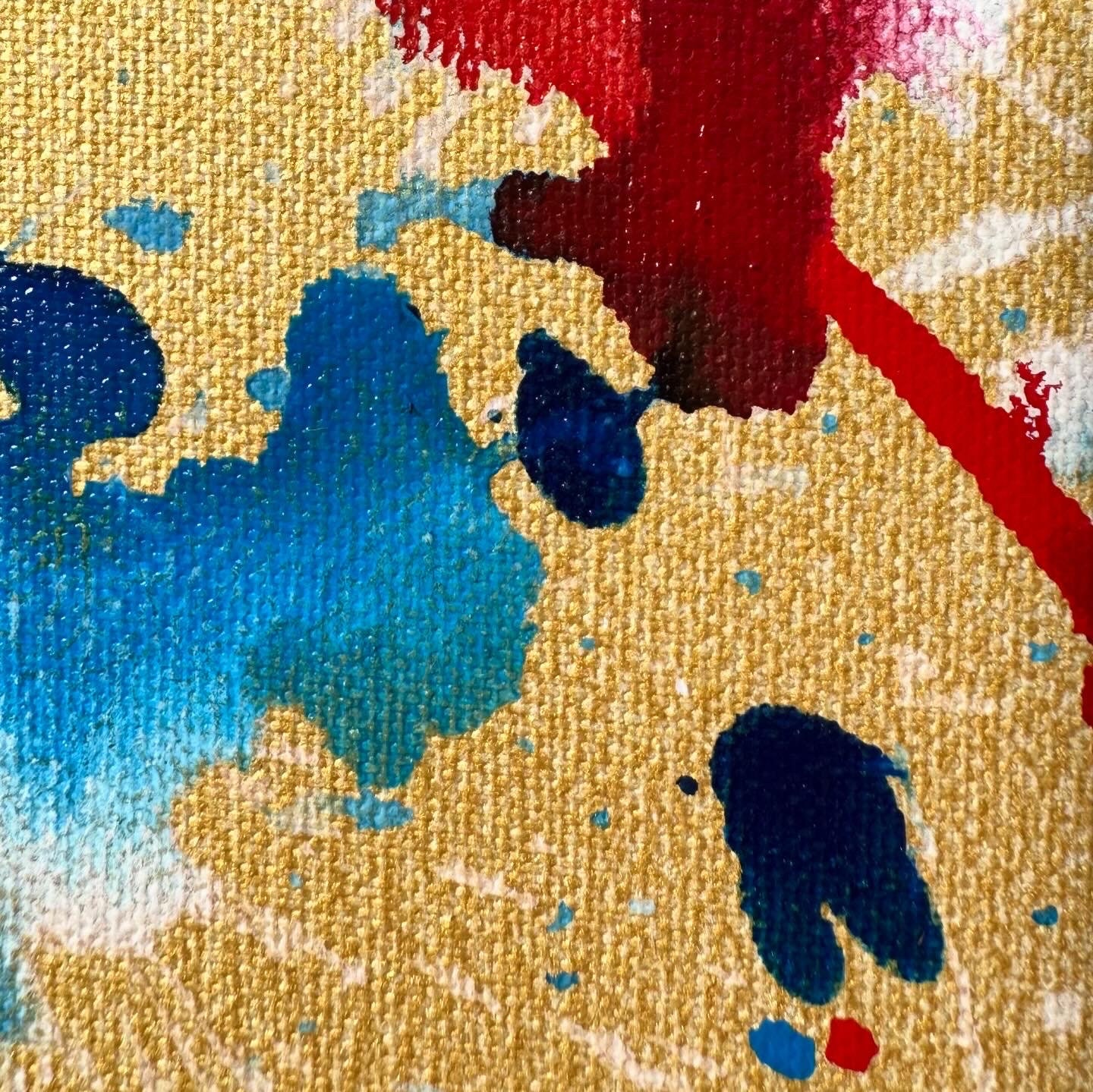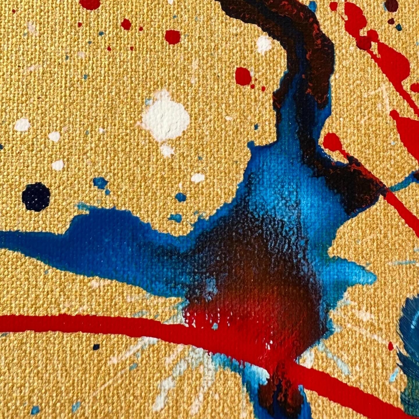 Abstract artwork, acrylic and ink mixed media on canvas, “Fountain of life”, dimensions: 80 cm x 80 cm x 1.7 cm