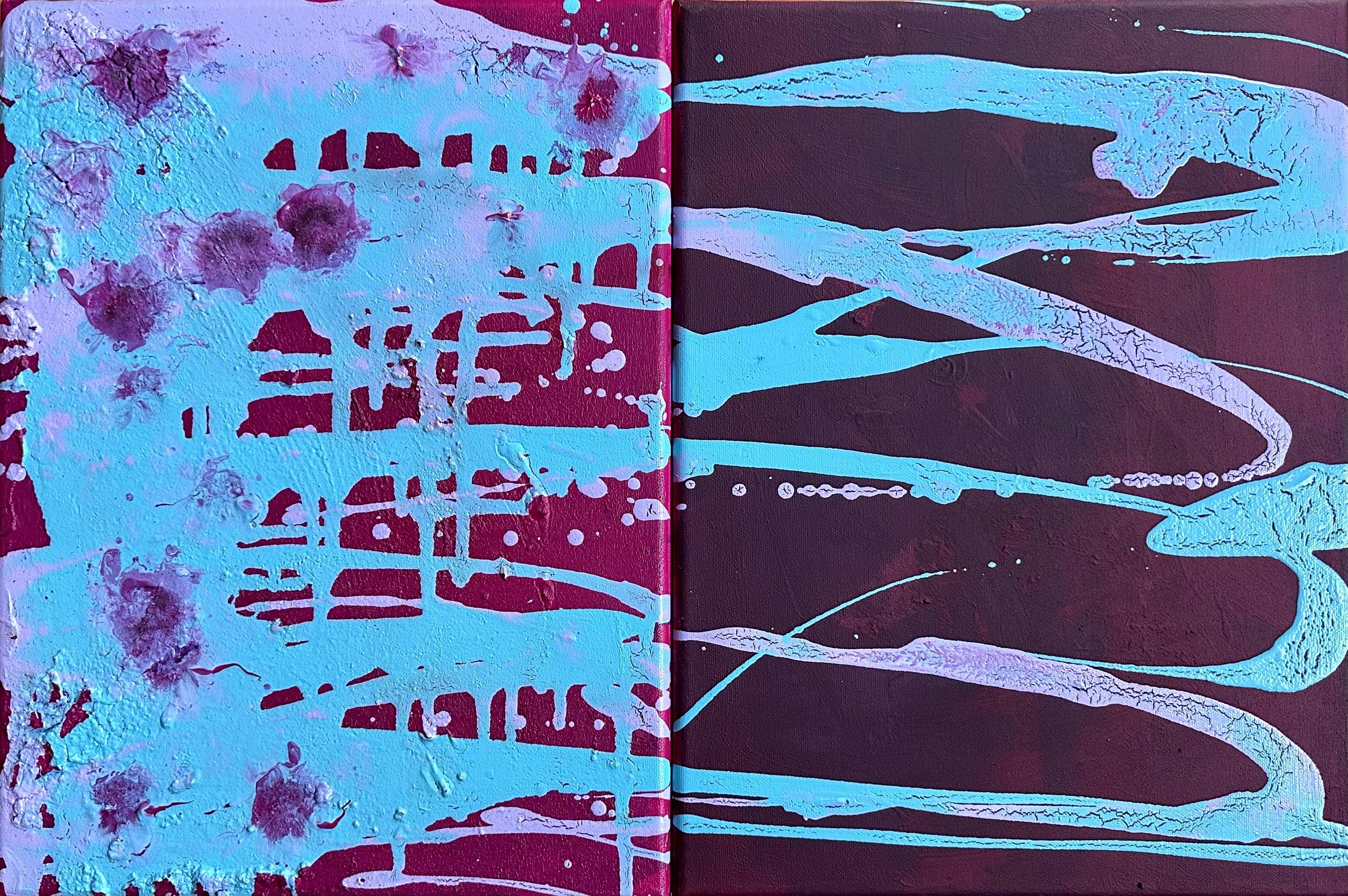 Abstract art painting using mixed media acrylic techniques on canvas, dimensions: 30 cm x 40 cm x 1.7 cm each