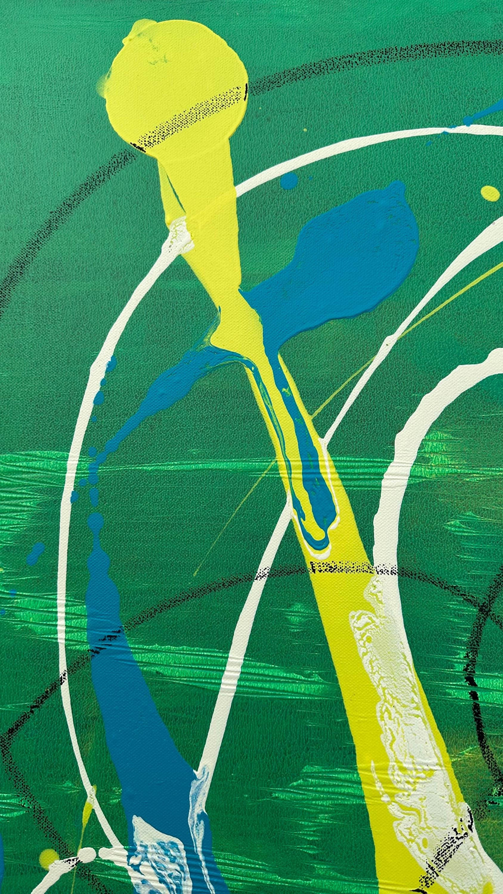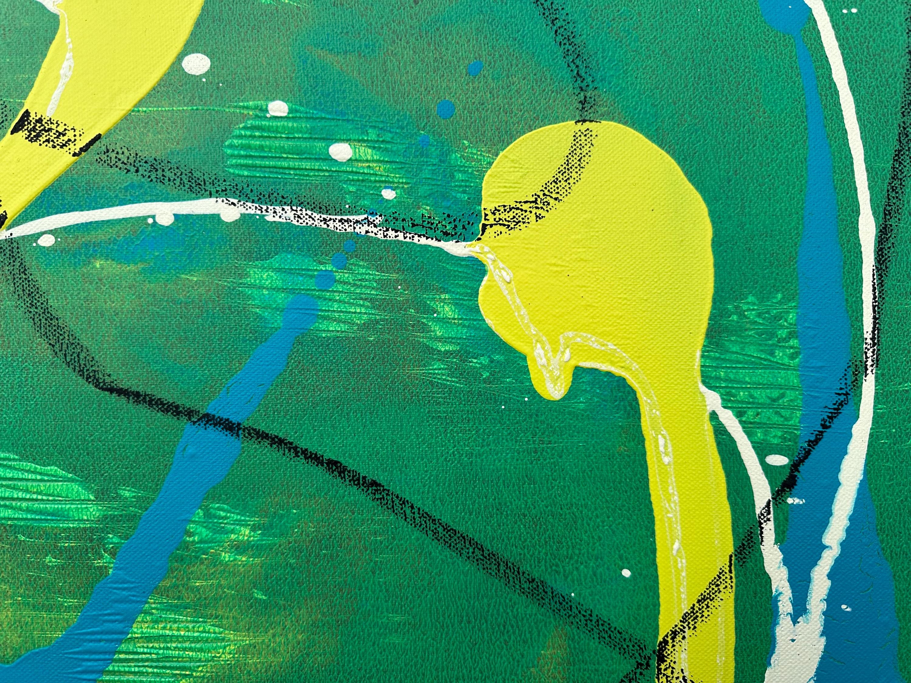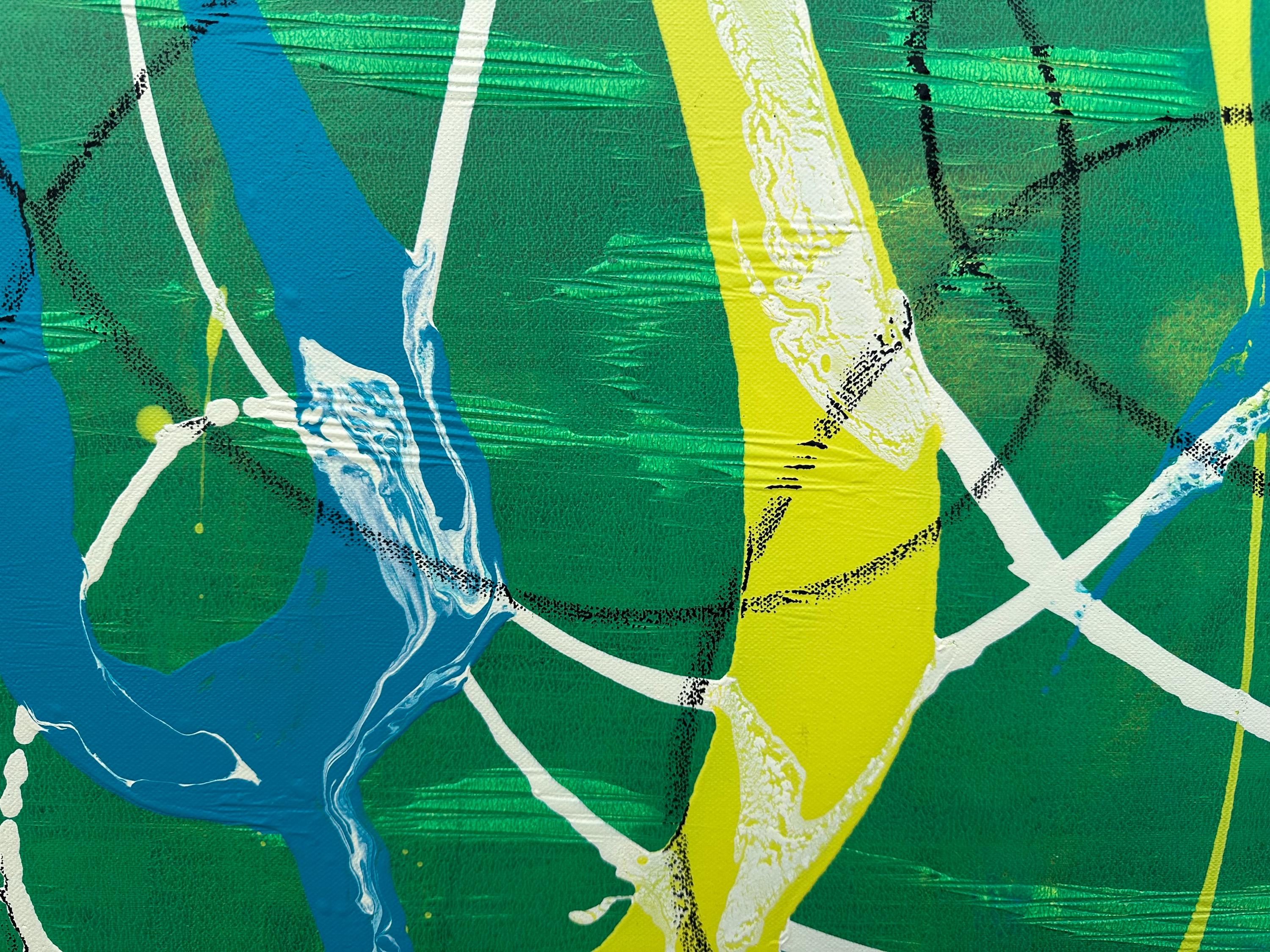 Abstract art painting with acrylic and pastel chalk on canvas, “Spirit”