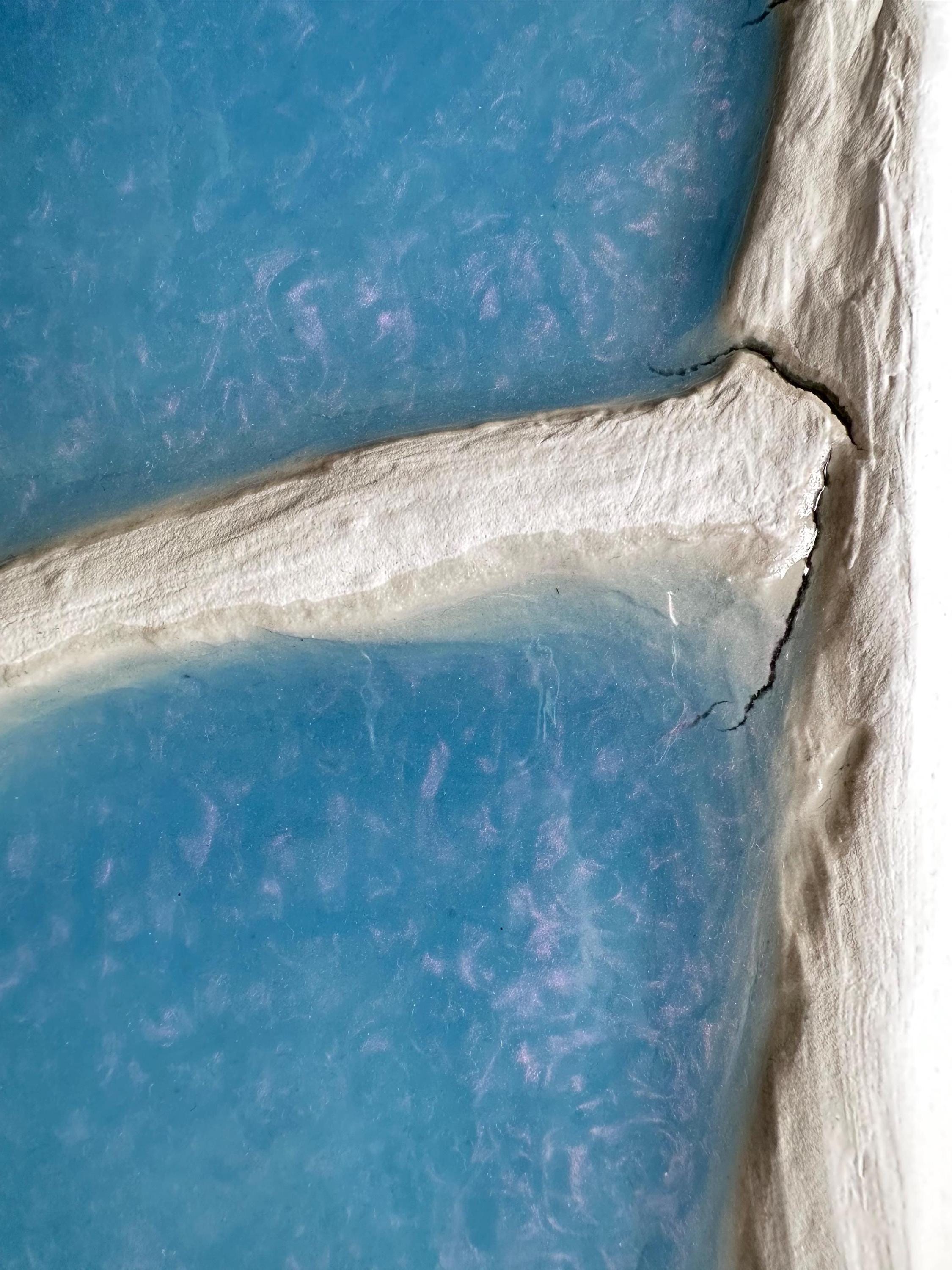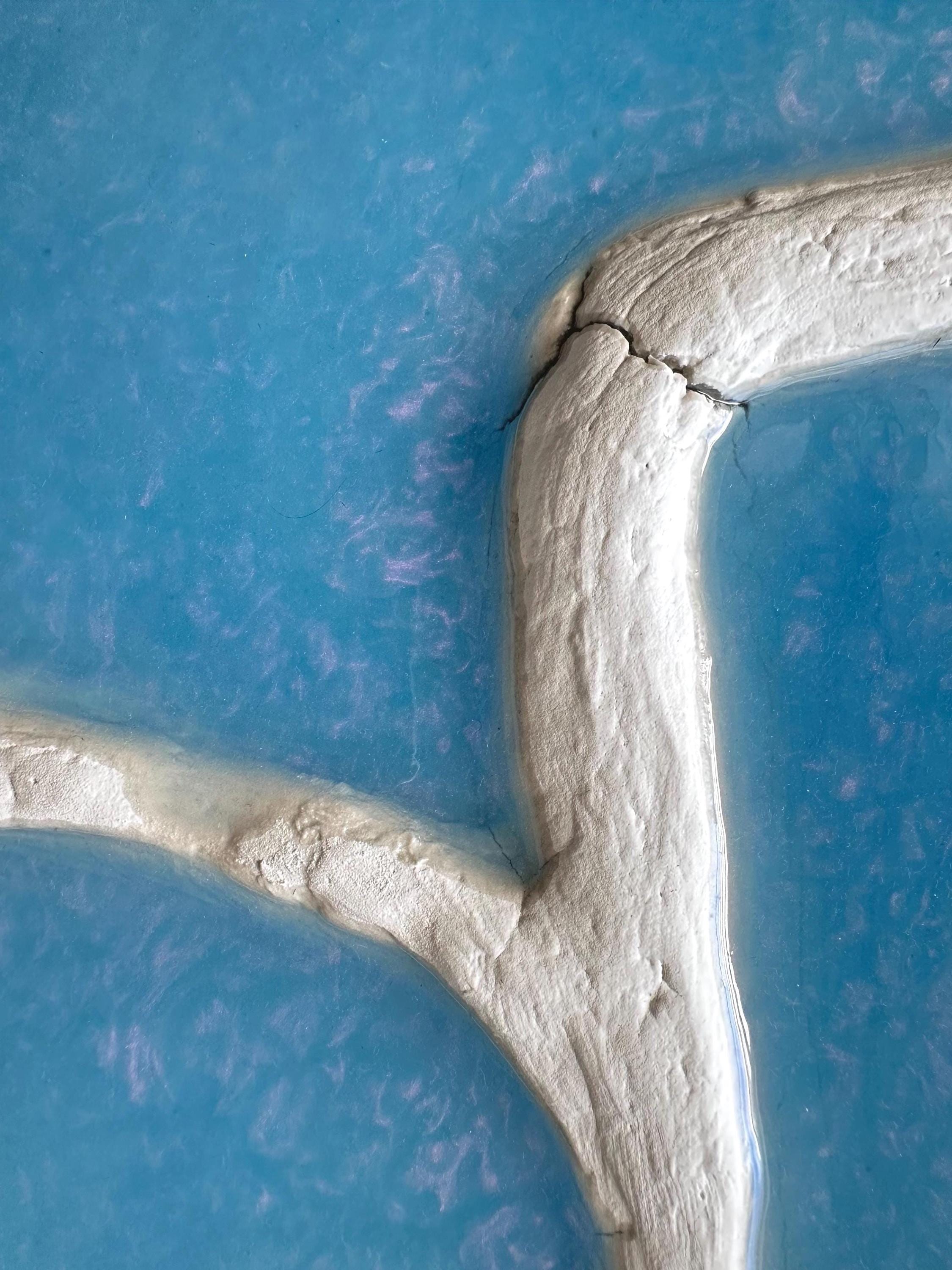 Dieses Bild ist mit Spachtelmasse und Epoxidharz kreiert worden und verkörpert das tote Meer mit seinen natürlichen Strukturen. Eine Vogelperspektive lässt die Tiefen erkennen und nimmt Dich mit auf eine innere Reise zu Dir selbst.